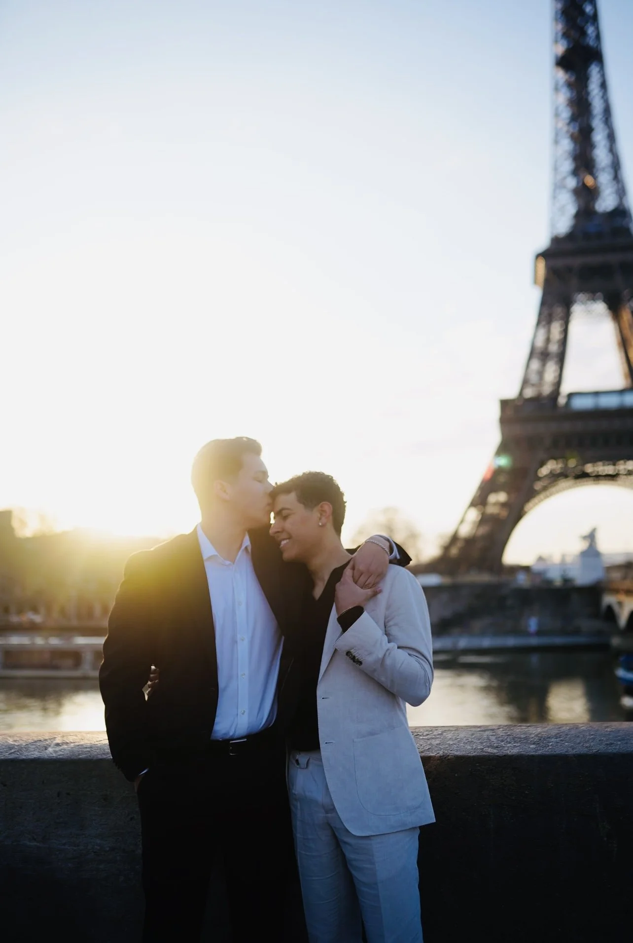 Andrew proposed in Madrid, getting down on one knee in front of the Royal Palace on a day that felt effortlessly magical. We had planned to stroll through the palace gardens, and while Aidan was admiring the flora and fauna, one of his favorite joys, Andrew caught him completely by surprise. Earlier that day, we had wandered the city hand in hand, discovering hidden corners and savoring the food, just as we always do together. It was a perfect reflection of us: a day full of exploration, love, and a moment we’ll carry with us forever.