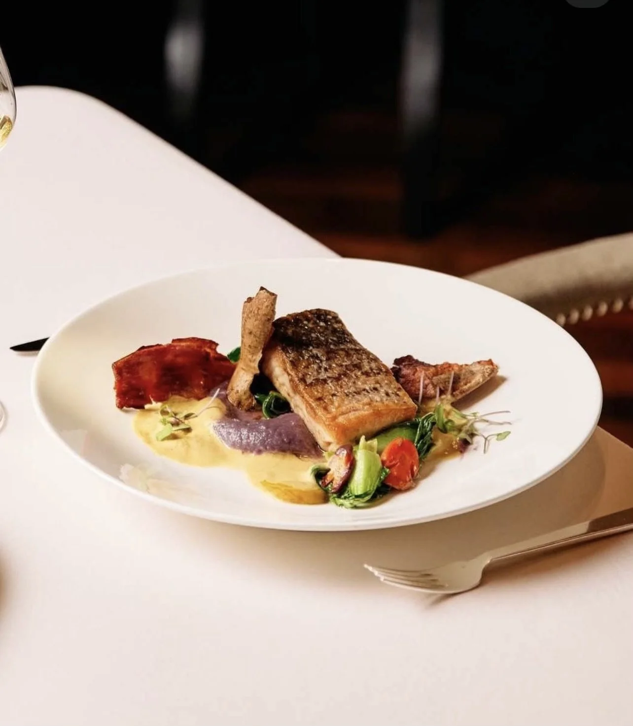 Seared Striped Sea Bass | Herb citrus Mascarpone | Chef’s Selection of Seasonsal Vegetables | Pea Tendril Risotto.